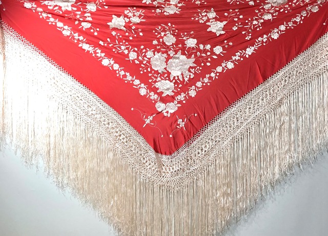 入荷致しました。 ◆サイズ 195x115cm (フレコ別) ◆フリンジ 27cm ◆素材 アムンゼン ◆カラー 赤多色刺繍 ◆重量 330g 【ご注意】 生地裏刺繍固定紙残滓が見られます。 使用しているうちに自然に剥がれ落ちます。 当方で無理に取り去ることは刺繍を傷める恐れがあるため行っておりません。 その点ご了承の上、お買い求め下さい。 #フラメンコシージョ