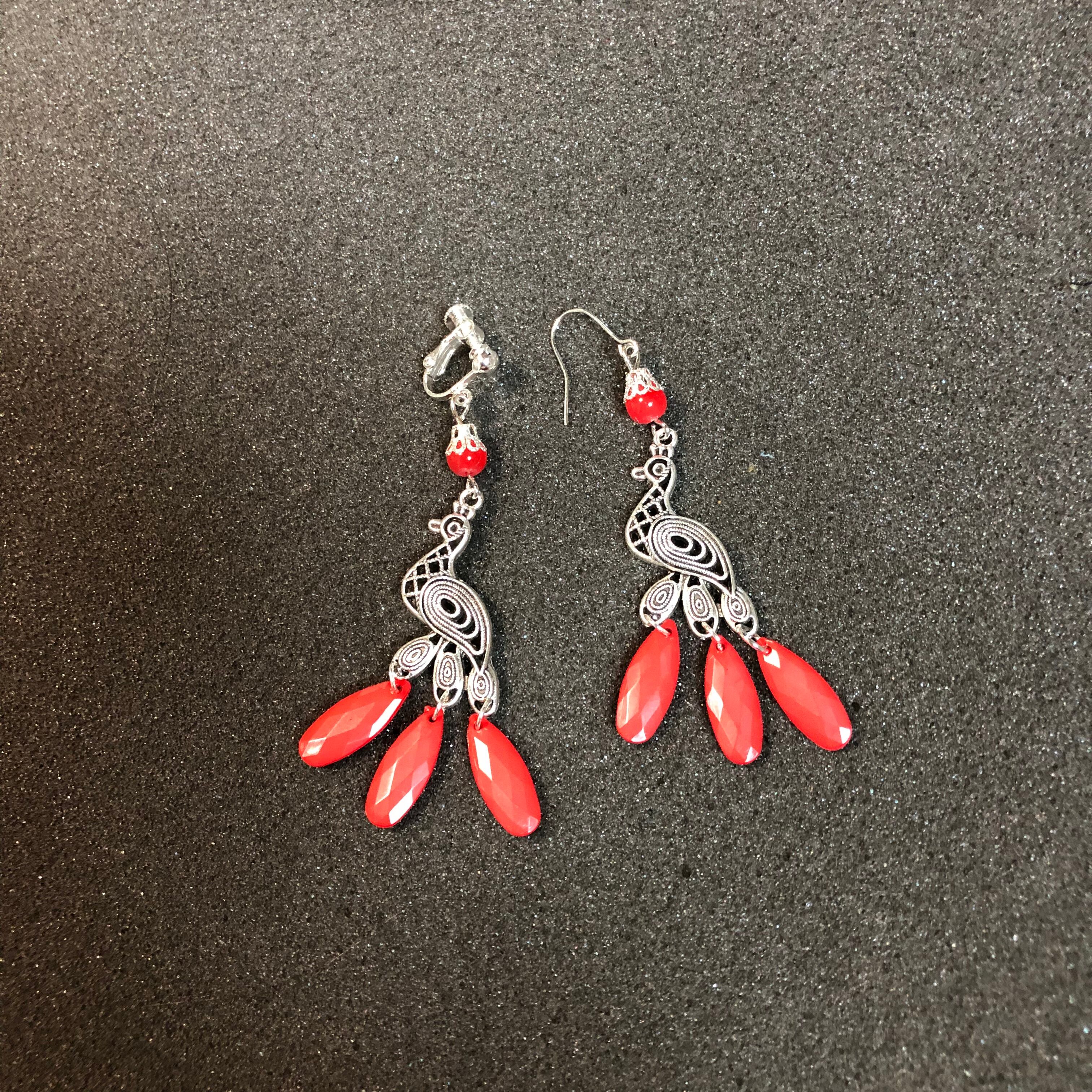 ✴︎フラメンコイヤリング(ピアス)コーラルレッド