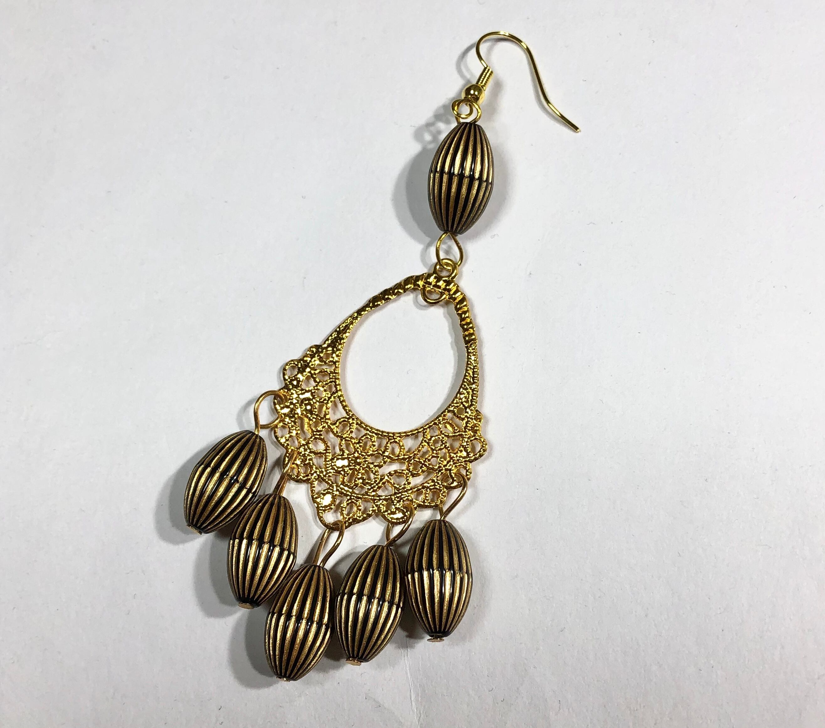 マットゴールドとのコントラストが綺麗なフラメンコ用じゃらじゃらピアス