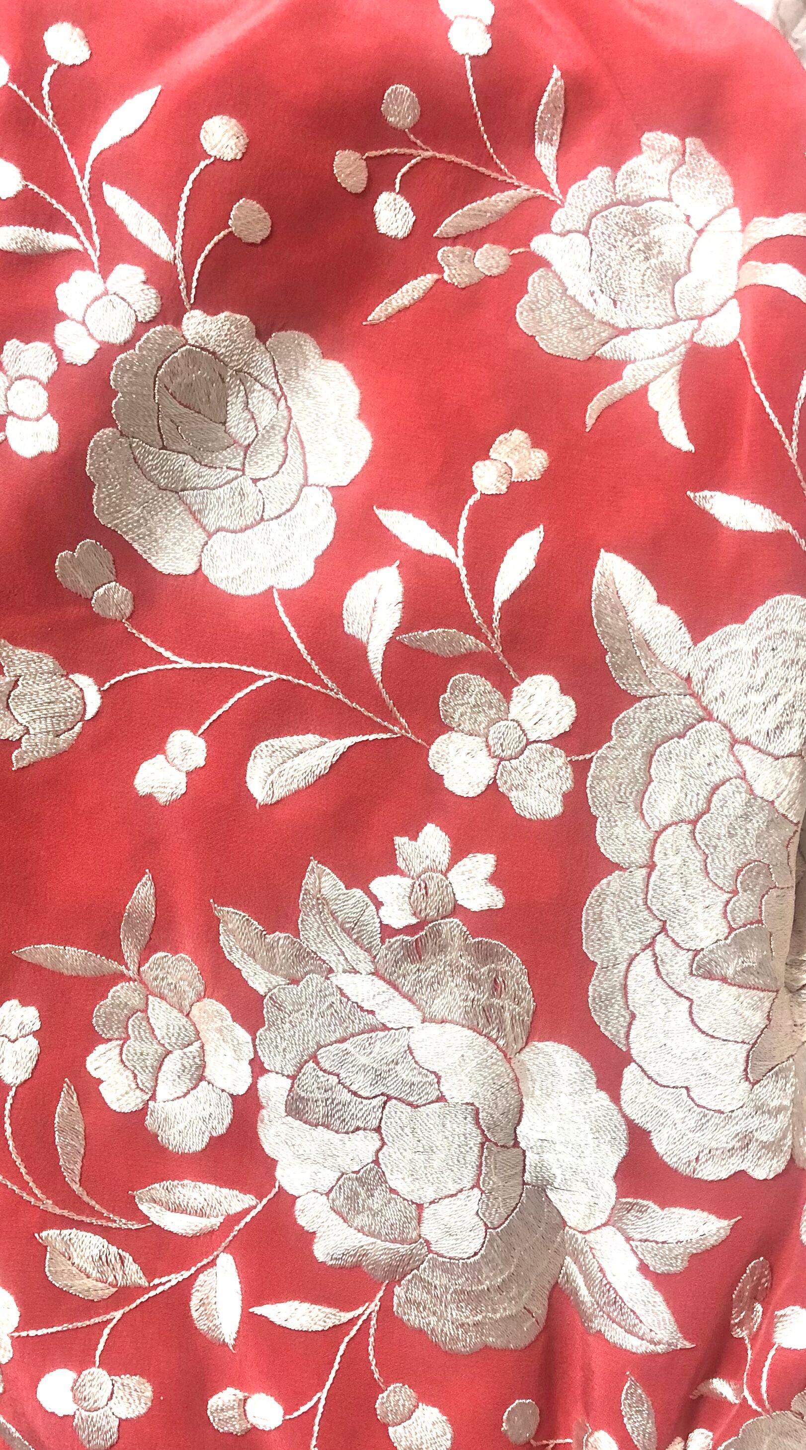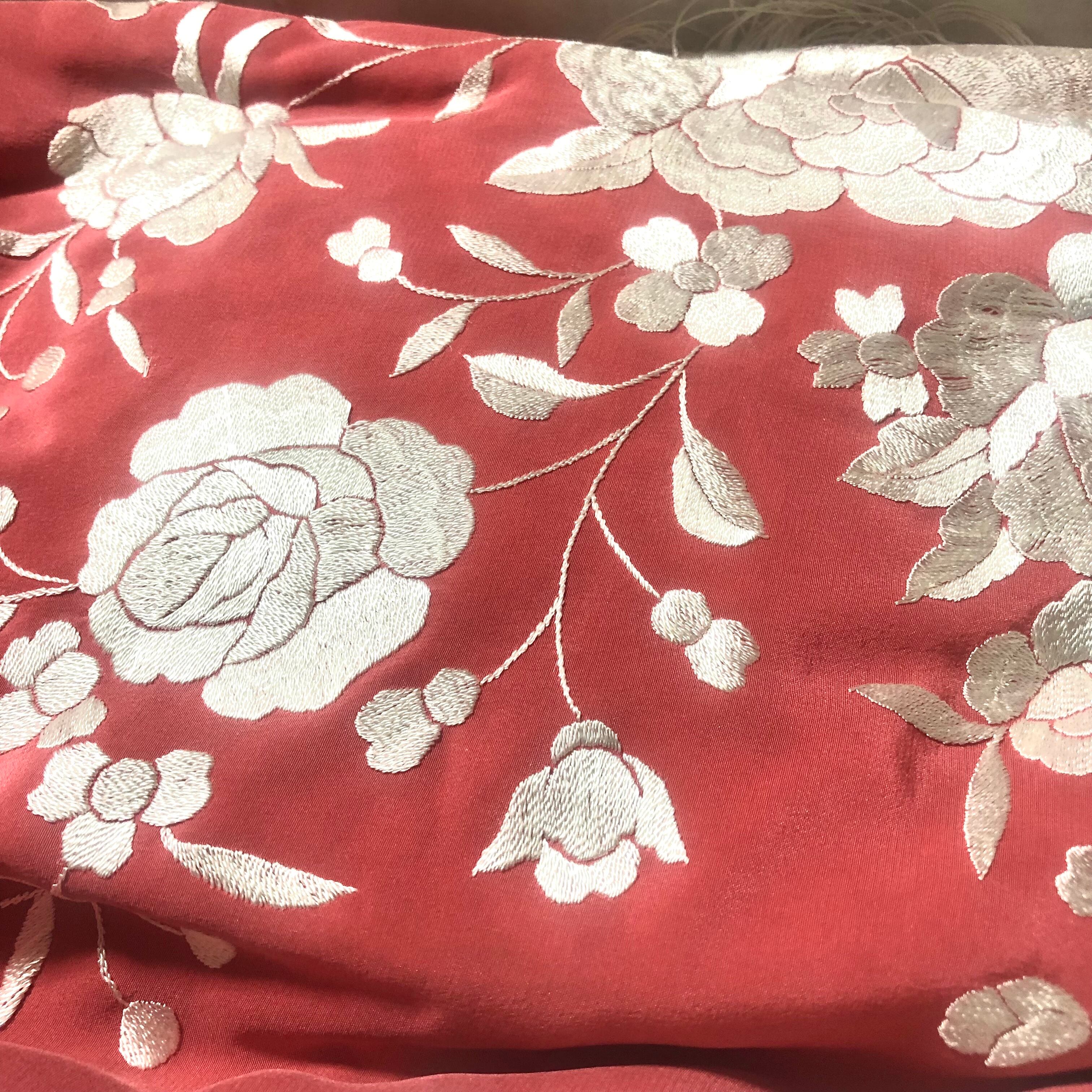 ◆カラー コーラルxアイボリー刺繍 アイボリーフレコ