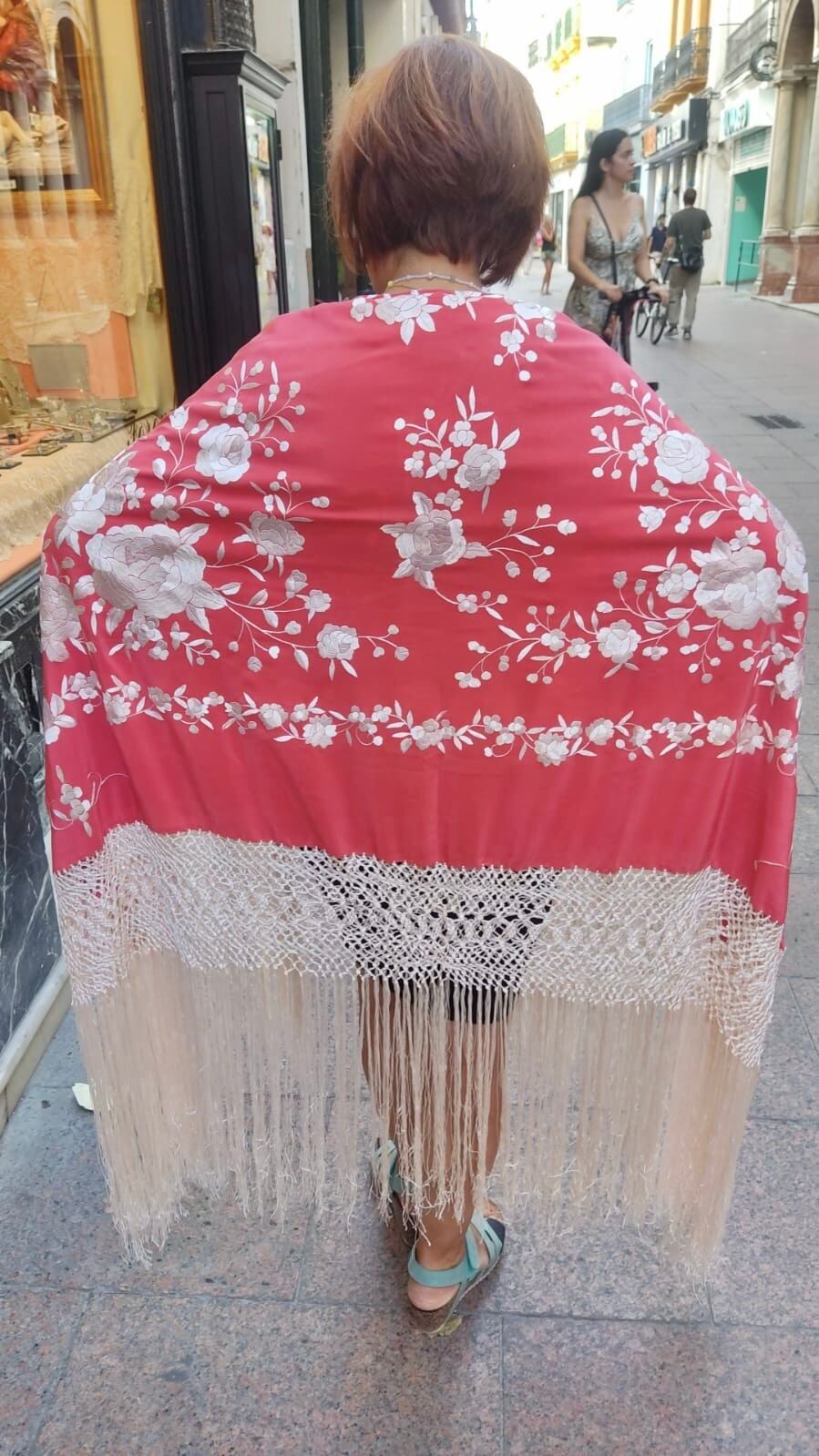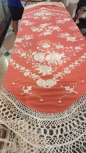 ボルダドスフォロンダ社のシルクマントンは、洗練されたデザインと豪華なシルク素材が特徴のアイテムです。コーラルカラーは女性らしさと華やかさを演出し、舞台以外でも様々なシーンで活躍します。さらに、シルク100%なので肌触りも良く、フレコの長さ、重さも申し分ないものです。