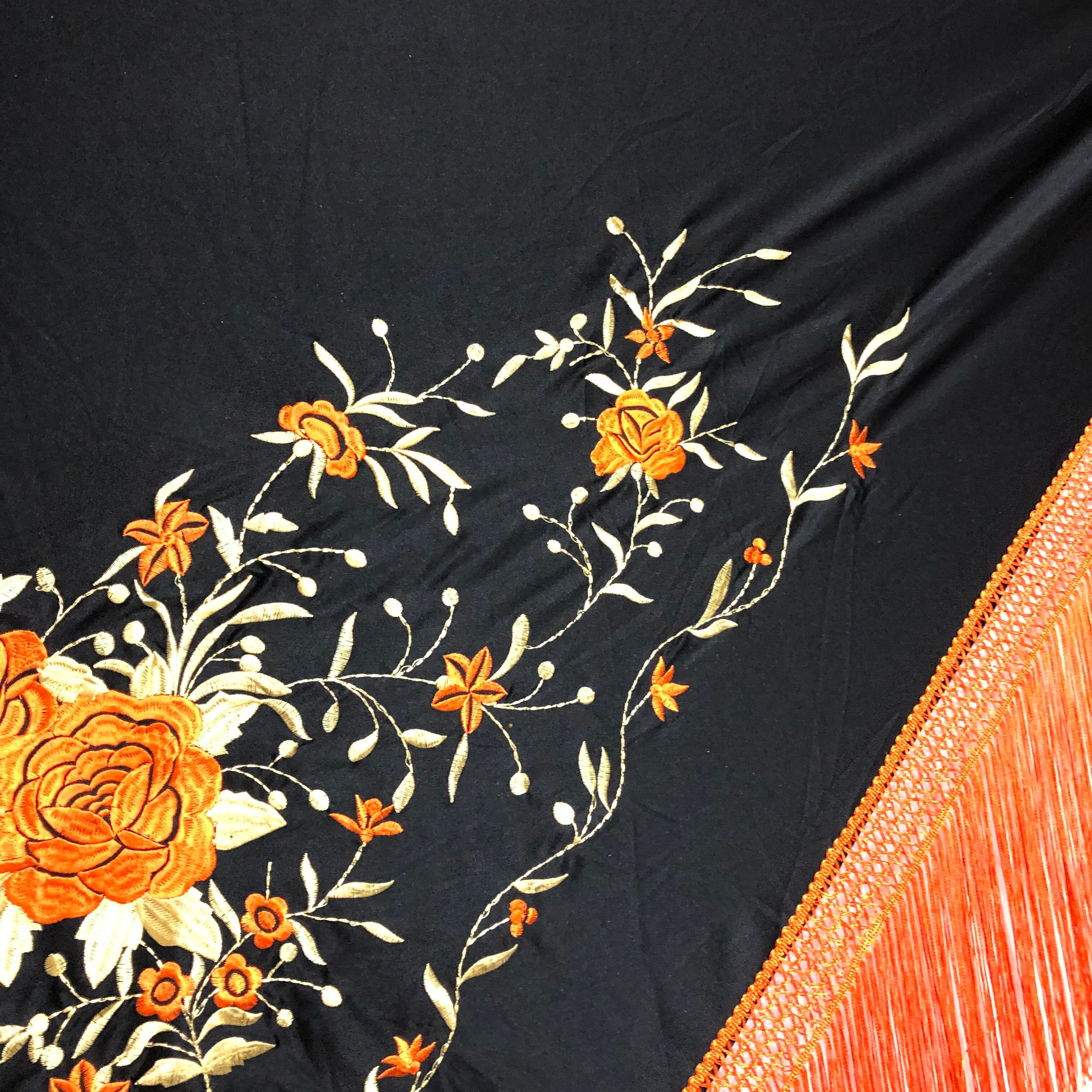 超特大フラメンコシージョ 黒オレンジ金刺繍オレンジフレコ